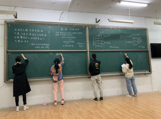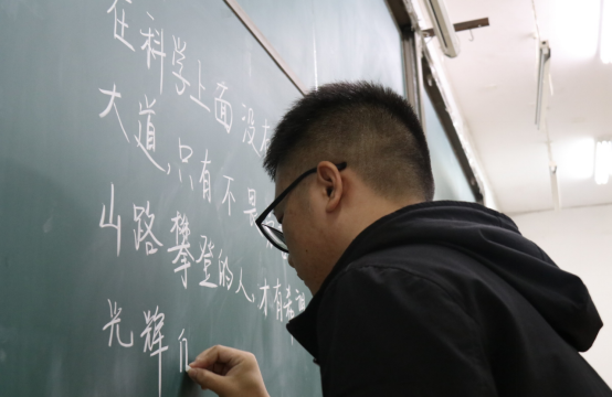 比赛开始后,选手依次上台进行粉笔字书写和硬笔字书写竞赛。选手们个个聚精会神,认真书写,板书漂亮工整,富有创意,一撇一捺间尽显自身硬笔书法的扎实功底。