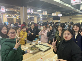 包饺子环节结束后,由宋宏科老师评选出六个“最美饺子”,并鼓励大家多多参与到传统节日中,积极传承中华民族优秀传统文化。在整场活动中,食堂氛围轻松愉悦,到处充满着爱和温暖。活动最后,大家纷纷合影留念,记录下这一幸福时刻。
