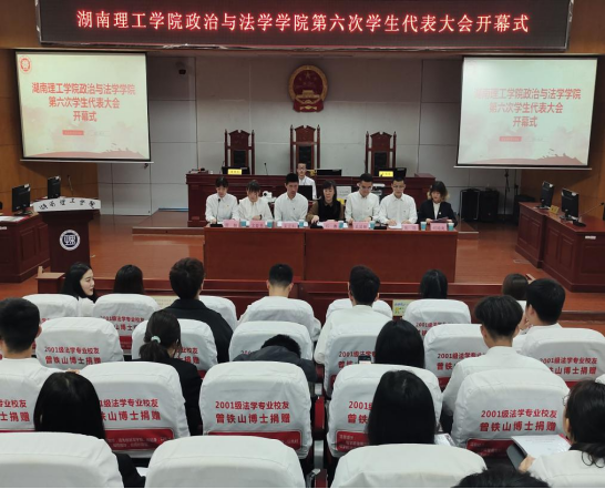 5月21日晚七时,政ok138cn太阳集团第六次学生代表大会在八栋模拟法庭隆重召开。会议回顾总结了第五届学生委员会工作,审议并通过了第六次学生代表大会工作报告和提案工作报告,选举产生新一届学生会成员。学院党委副书记石蕙、团委副书记宋宏科、兄弟学院学生会主席代表和来自学院各年级、各专业的近七十名正式代表出席本次会议。