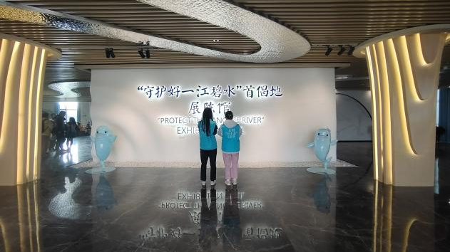 展陈馆以“守护好一江碧水、创建人类文明新形态”为题,分设“长江·母亲之河”、“习近平总书记情系长江”、“守护好一江碧水”、“逐梦·人类文明新形态”四个展区。整体展陈以既定时期的图像为基调,通过3D裸眼大屏、游戏互动等技术形式,向志愿者们集中展现了岳阳碧水“上下天光,一碧万顷”的生态底色,娓娓道来习近平主席情系长江、首倡守护一江碧水的故事。“候鸟的欢歌”“麋鹿的倩影”“江豚的微笑”三类生物保护分区,则让志愿者们更好地领略到了“还岸线一抹新绿,还江湖一泓碧水”的重要性。