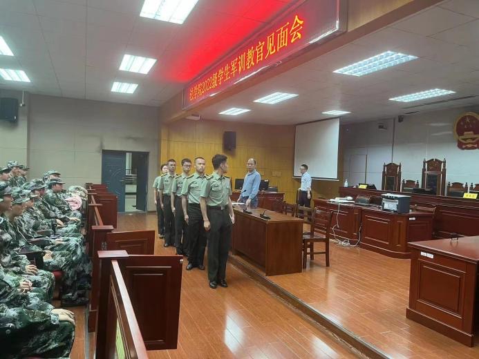 【本站讯】为落实国防教育工作,确保2022级学生军训事宜进一步展开,我院于4月16号晚七点在八栋模拟法庭举行了2022级学生军训教官见面会。ok138cn太阳集团党委副书记张陈武、2022级辅导员、担任本次新生军训的5名教官以及全体2022级参加了本次大会。