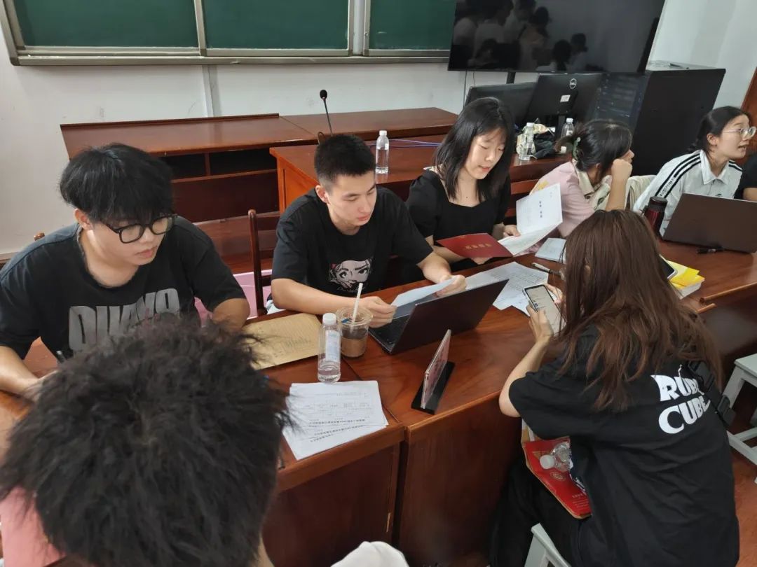 行至八栋教学楼,热心负责的志愿者与班助帮助新生们完成登记,为新生答疑解惑。完成登记后,志愿者们主动接过远道而来的新生的行李,将他们领至宿舍,为他们讲述校园生活的点点滴滴。院领导们也丝毫不惧炎热,在迎新处亲切慰问志愿者与新生,将温暖与关怀带给了每一位同学。
