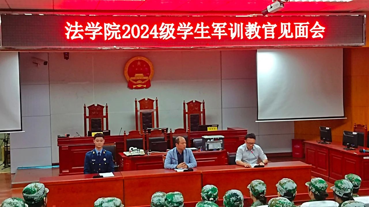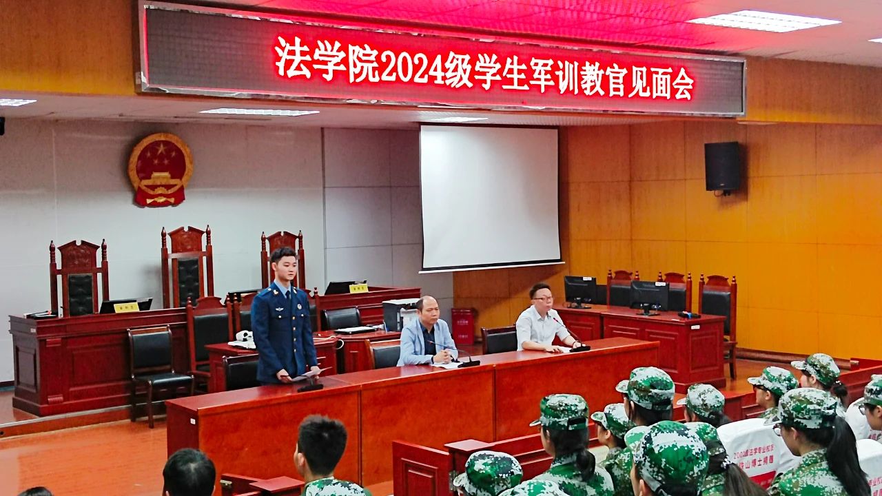 为加强我院学生的爱国主义和社会主义教育,增强学生国防意识,培养集体主义精神,全面提高学生综合素质。2024年10月7日ok138cn太阳集团于模拟法庭组织开展军训教官见面会。学院党委副书记张陈武及本次带训教官徐梓豪等出席,2024级全体新生参加,会议由何铁勇老师主持。