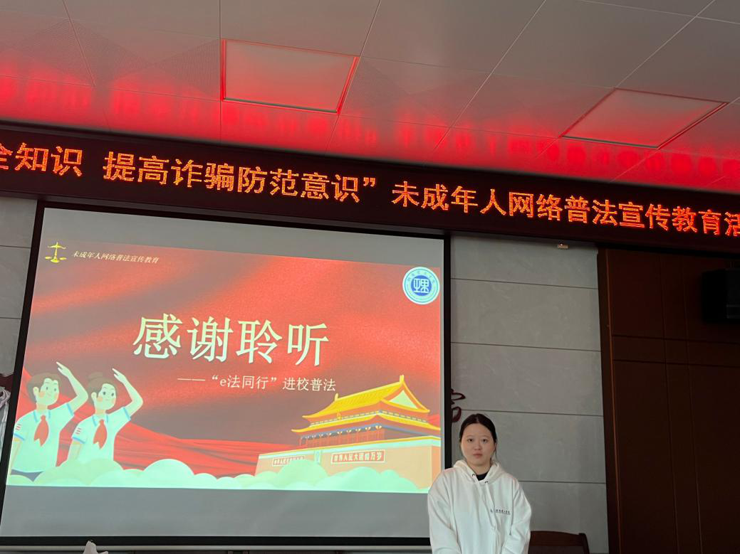 在互联网浪潮奔涌的今天,防范网络诈骗,法律是坚实可靠的盾牌。当下,我们更要将网络安全意识深植于心,让每一个青少年都能在清朗的网络天空下自由翱翔。“e法同行”普法志愿服务团队将持之以恒地开展普法宣讲活动,以法律知识为墨、以责任担当为笔,为青少年精心描绘出一幅安全、健康的网络生活画卷。(撰稿:陈红霞;一审:周薇;二审:张陈武;三审:薛静)