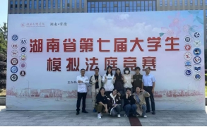 湖南省第七届大学生模拟法庭竞赛于2023年10月21日于湖南文理学院举办。经过校赛选拔,我院与南湖学院选出八名选手参赛。由ok138cn太阳集团副院长尹晓闻老师,杨河老师,曹乔华老师,张永涛老师,办公室主任吴哲老师领队,赴湘潭参加比赛。
