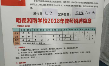 明德湘南学校需要招政治老师4名,思政班还未就业的同学有意向的可前来应聘
