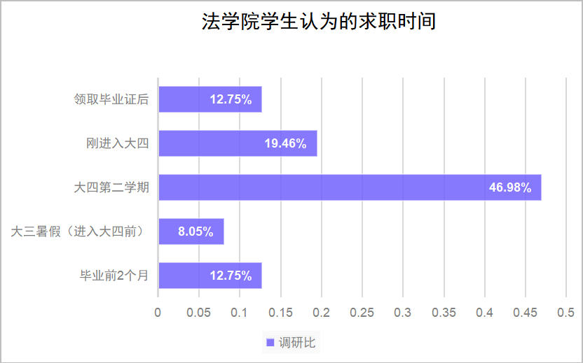 求职时间也是选择职业的一个很大的决定因素,大多数同学会选择在大四第二学期选择工作,提前积累工作经验,在于其他应届生的竞争中凸显出自己的优势。
