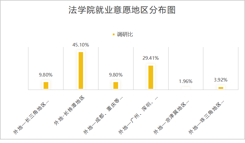 毕业生对于就业地区的选择更加趋向于外地。例如长沙、株洲、湘潭、广州、深圳等地区,大家都希望在离家近的大城市就业。
