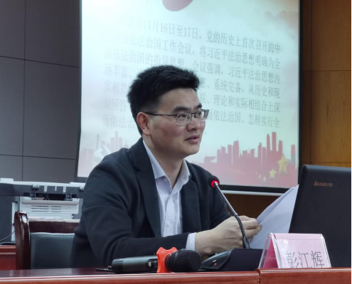 彭江辉老师首先对习近平法治思想的形成与发展进行系统阐述,从十八大到十九届五中全会历次会议对习近平法治思想的形成过程进行了全面梳理,重点针对中央全面依法治国工作会议上提出的习近平法治思想的“十一个坚持”进行了深入阐释,他指出,习近平法治思想内涵丰富、论述深刻、逻辑严密、系统完备,从历史和现实相贯通、国际和国内相关联、理论和实际相结合上深刻回答了新时代为什么实行全面依法治国、怎样实行全面依法治国等一系列重大问题。他强调,习近平法治思想具有重要的政治意义、理论意义、实践意义和世界意义。并以习近平总书记2021年4月19日在清华大学师生代表座谈会发表重要讲话中对当代中国青年的寄语与同学们共勉。