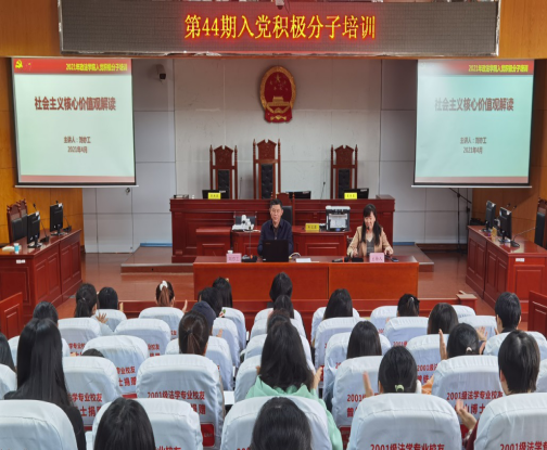 4月27日下午14时,校党委委员、副校长刘亦工教授应邀在政ok138cn太阳集团模拟法庭为学院第44期入党积极分子作“社会主义核心价值观解读”专题党课,政ok138cn太阳集团党委副书记石蕙主持党课,第44期入党积极分子培训班全体学员聆听此次党课。
