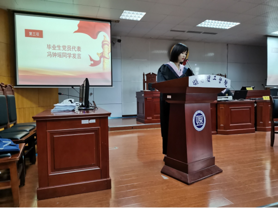 会上,全体学生党员在17级思想政治教育专业学生闫良君的领誓下,一起重温了入党誓词,洪亮且郑重的誓言,表达出在场每一位共产党人的坚定信念和决心。毕业生党员代表、17级法学专业冯钟瑶同学上台发言,表达了对学校和学院的感激之情,表示作为学生党员要承担责任与担当,在学院需要的时候挺身而出,不断提高对自我的要求和对事业的追求,并号召学院全体学生党员要不忘初心,牢记使命,把小我融入大我,实现人生价值。在会议最后,学院党委、各支部书记分别向毕业生党员赠送信仰礼包,并向毕业生党员表达了祝福和期望。(撰稿:杨瑞;初审:石蕙;终审:喻义东)