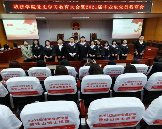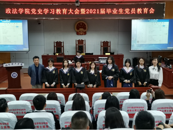 为进一步提升学生党员的党性修养,增强党员的使命感与责任感,推进毕业生党员党史学习教育走深走实,坚定毕业生党员信仰和初心。5月20日上午九时,政ok138cn太阳集团党史学习教育大会暨2021届毕业生党员教育会在学院模拟法庭举行。学院党委书记喻义东、各学生支部书记、全体无课的学生党员近100多人参加大会。会议由学院党委副书记石蕙主持。