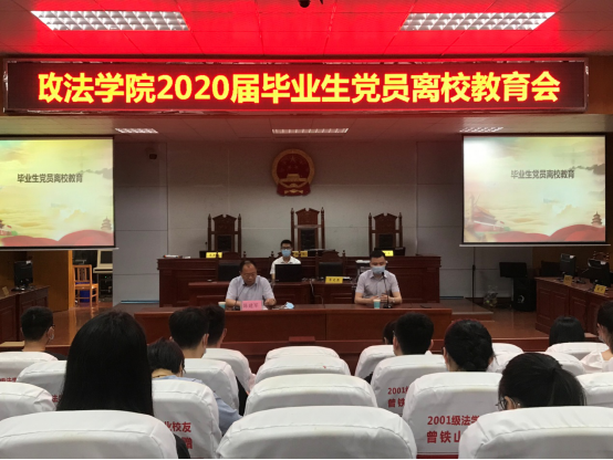 2020年5月27日下午四时,为做好政ok138cn太阳集团2020届毕业生文明离校的各项工作,引导学生党员在毕业生离校工作中发挥先锋模范作用,政ok138cn太阳集团在八栋二楼模拟法庭组织召开了2020届毕业生党员离校教育会。会议由辅导员杨宗圆主持,政ok138cn太阳集团党委书记陈建军教授莅临现场并给毕业生党员上离校前的最后一次党课。