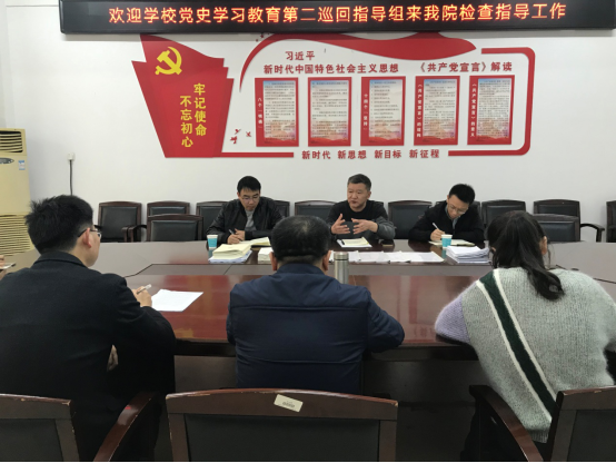 为认真贯彻落实中央和省委关于党史学习教育的总体部署安排,4月20日,学校党史学习教育第二巡回指导组组长阳鲁平一行深入我院督导第一轮党史学习教育工作。学院党委书记陈建军、副院长彭江辉、副书记石蕙及各教师学生支部书记参加会议。