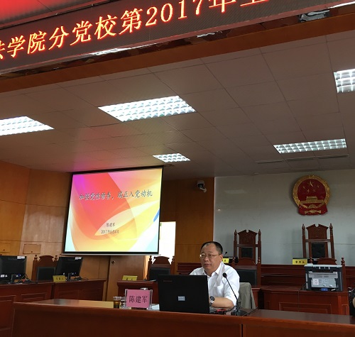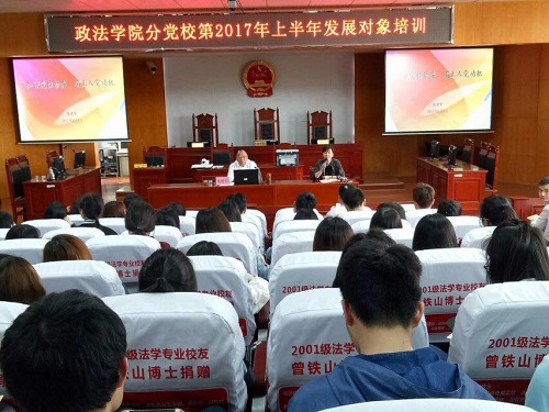 为帮助发展对象及入党积极分子进一步加强党性修养,端正入党动机,5月4日下午2时30分,我院分党校在模拟法庭举行发展对象及入党积极分子第四场专题培训。此次培训由我院院长、院党总支组织委员陈建军教授主讲,学院党总支书记刘淳松、副书记石蕙、辅导员杨宗圆等领导老师出席此次培训,我院发展对象及入党积极分子和2016级部分同学参加此次培训。