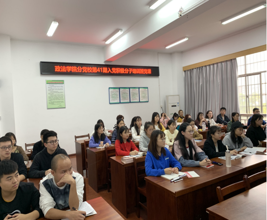 政ok138cn太阳集团分党校在学院8207教室举办第四十一期入党积极分子培训班。湖南理工学院校党委委员、组织部部长刘创教授主讲,政ok138cn太阳集团第四十一期入党积极分子培训班全体学员聆听了党课。