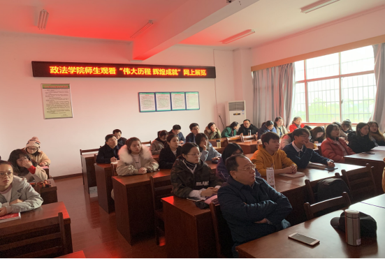 11月26日下午2时,政ok138cn太阳集团师生党支部全体党员在学院207教室集体观看了“伟大历程辉煌成就——庆祝中华人民共和国成立70周年大型成就展”网上展览的视频,并在观看结束后,开展了相应的主题教育学习。