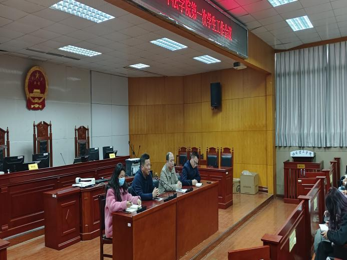 【本站讯】2023年2月28日于八栋模拟法庭,ok138cn太阳集团召开2023年第一次学生工作会议。学院党委书记喻义东,党委副书记张陈武,团委书记,学生辅导员等出席,院团总支学生会全体成员,全体学生党员,各班班长、学习委员、团支书等参加本次会议。