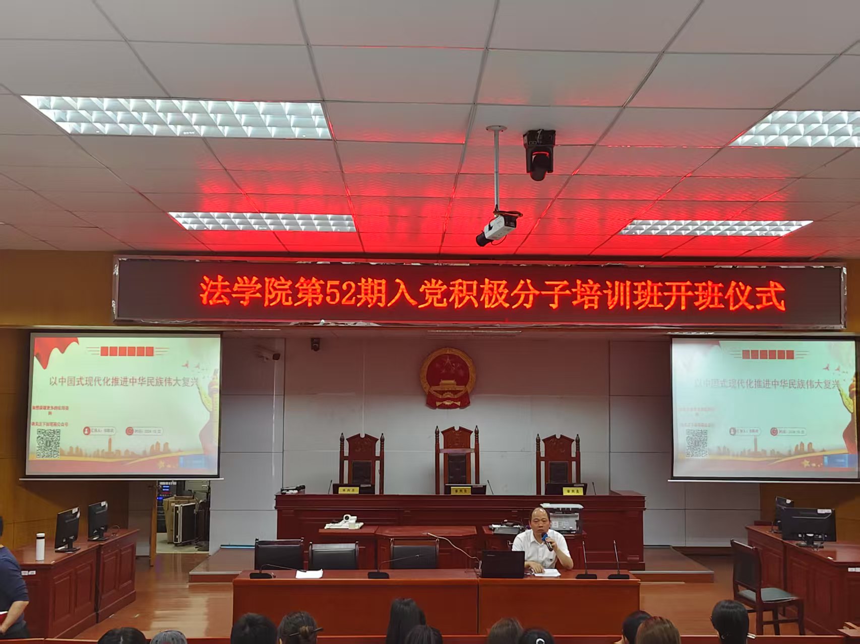 【本站讯】为开展深入贯彻中央八项规定精神学习教育,提高入党积极分子的政治觉悟,4月15日14:10于八栋模拟法庭,ok138cn太阳集团党委副书记张陈武为第52期入党积极分子讲授第一堂党课。ok138cn太阳集团第52期入党积极分子培训班41名入党积极分子参加。