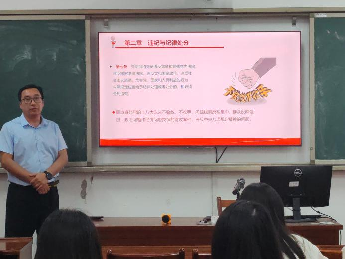 【本站讯】为强化入党积极分子的纪律意识,进一步明确是非界限、守住行为底线,5月13日15:00于8207教室,ok138cn太阳集团党委委员、副教授张咏涛为第52期入党积极分子讲授第三堂党课。ok138cn太阳集团第52期入党积极分子培训班共32人参加本次授课活动。