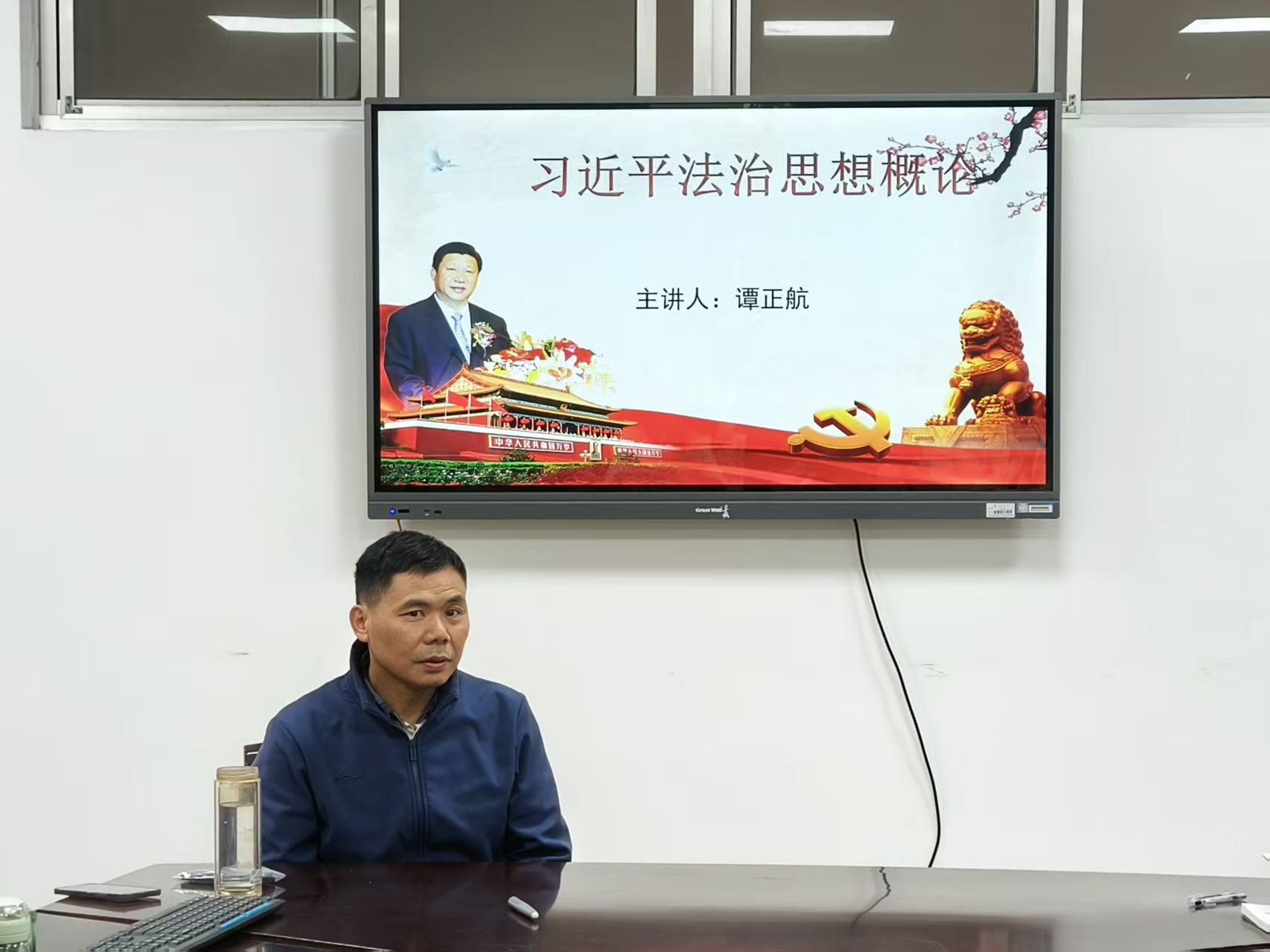 谭正航以“习近平法治思想概论”为主题,重点讲述“习近平法治思想的实践逻辑、理论逻辑和历史逻辑”“习近平法治思想的鲜明特色”“习近平法治思想的理论体系”“习近平法治思想的主要内容”四个方面。他强调,作为新时代建设者,应深学细悟习近平法治思想,牢固树立法治思维,主动传播法治正能量,为法治中国建设注入持久动力。