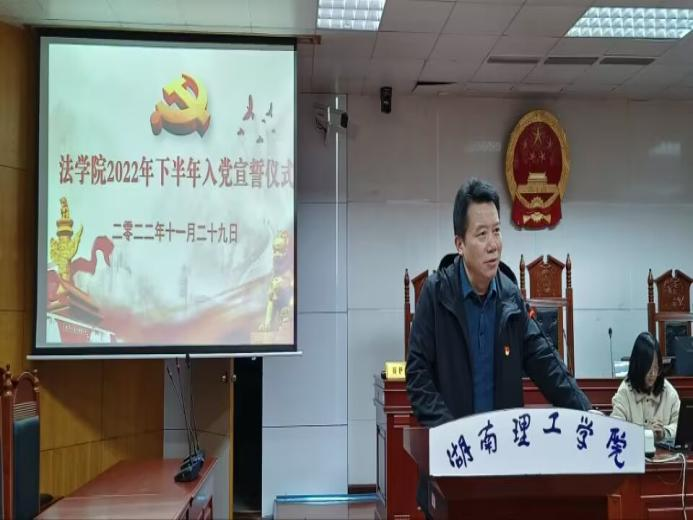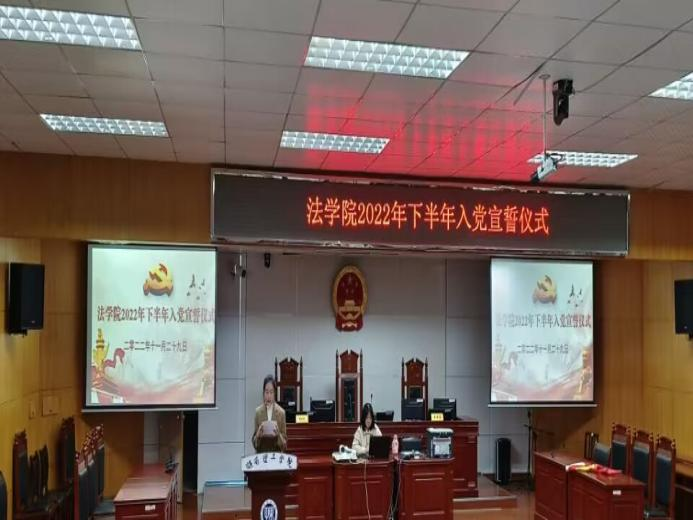 【本站讯】11月29日17:00于8栋教学楼模拟法庭,ok138cn太阳集团举行2022年下半年入党宣誓仪式。ok138cn太阳集团党委书记喻义东、党委副书记张陈武、学生党支部书记、研究生党支部书记出席此次活动,ok138cn太阳集团全体学生党员及入党积极分子参加。