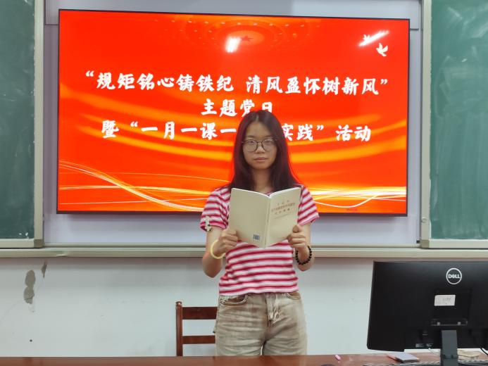 【本站讯】为引导党员干部深刻领会中央八项规定精神实质和时代价值,切实做到知敬畏、存戒惧、守底线,61517:008207教室,ok138cn太阳集团党委开展规矩铭心铸铁纪,清风盈怀树新风主题党日暨一月一课一片一实践活动。ok138cn太阳集团全体师生党员及第52期入党积极分子参加。