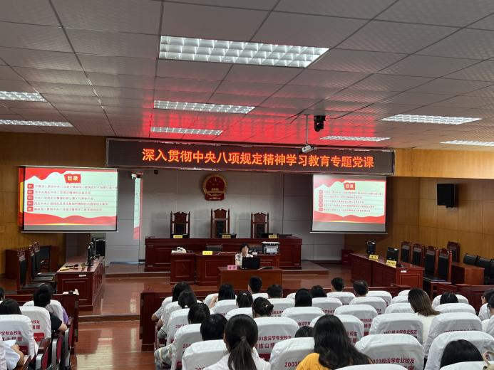 【本站讯】为深入贯彻中央八项规定精神学习教育切实推动学习教育见行见效、化风成俗,6月17日15:00于8T2,ok138cn太阳集团党委书记薛静围绕“深入学习贯彻中央八项规定精神锻造优良校风、教风、工作作风主题讲授党课。ok138cn太阳集团全体师生党员及第52期入党积极分子参加。