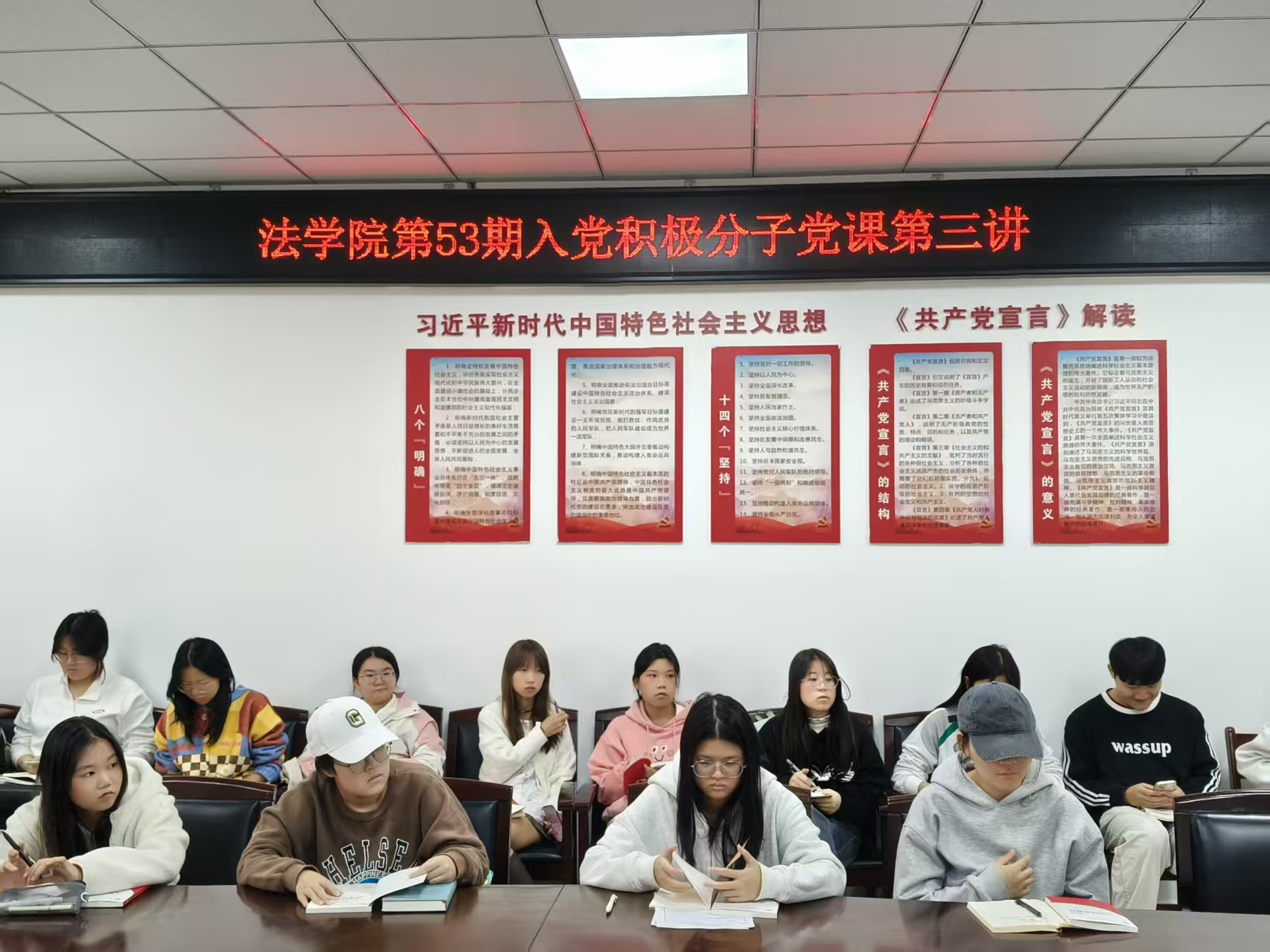 【本站讯】为助力入党积极分子全面了解入党条件,增强向党组织靠拢的信心,11月4日14:30于八栋会议室,ok138cn太阳集团党委组织员、学生党支部书记何铁勇为第53期入党积极分子讲授党课。第53期入党积极分子共42人全体参加。