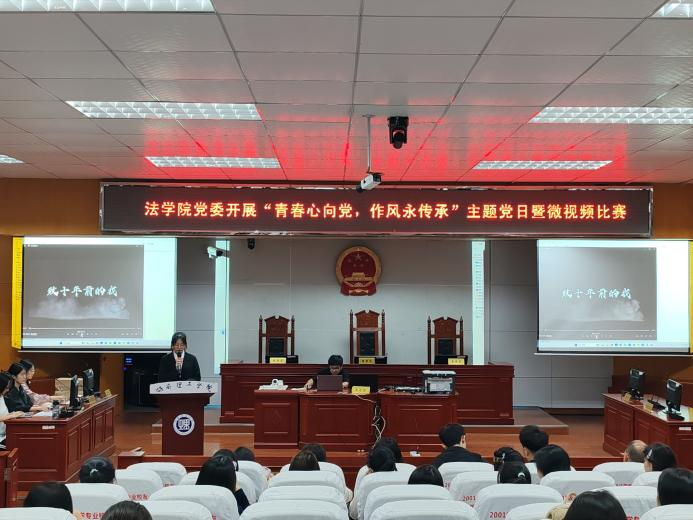 【本站讯】为深入贯彻中央八项规定精神学习教育,进一步加强党的作风建设,引导广大青年学子扣好人生“第一粒扣子”,4月22日晚,ok138cn太阳集团开展“青春心向党,作风永传承”微视频比赛暨“一月一课一片一实践”主题党日活动。ok138cn太阳集团党委副书记张陈武出席,ok138cn太阳集团全体师生党员及第52期入党积极分子参加。